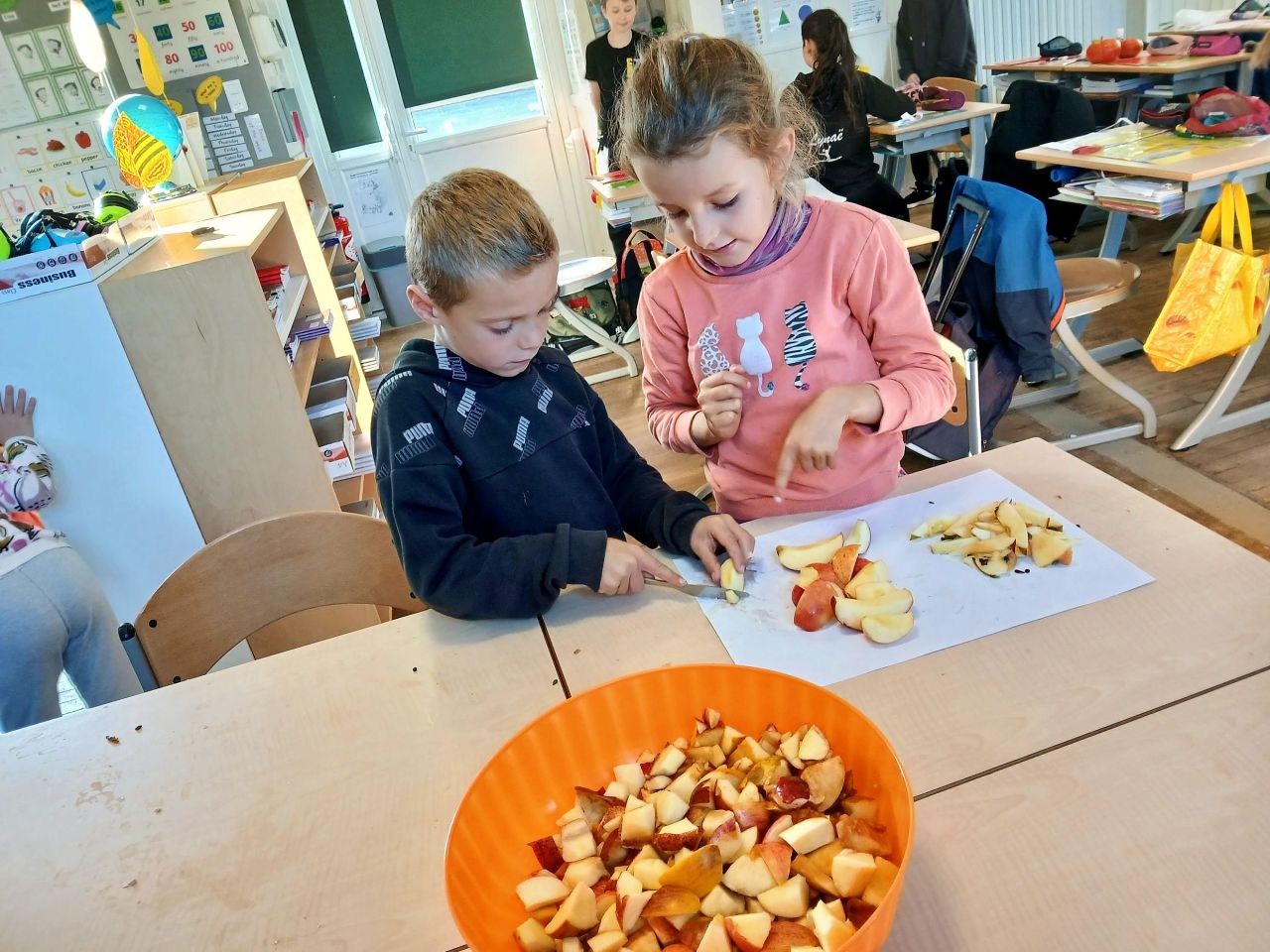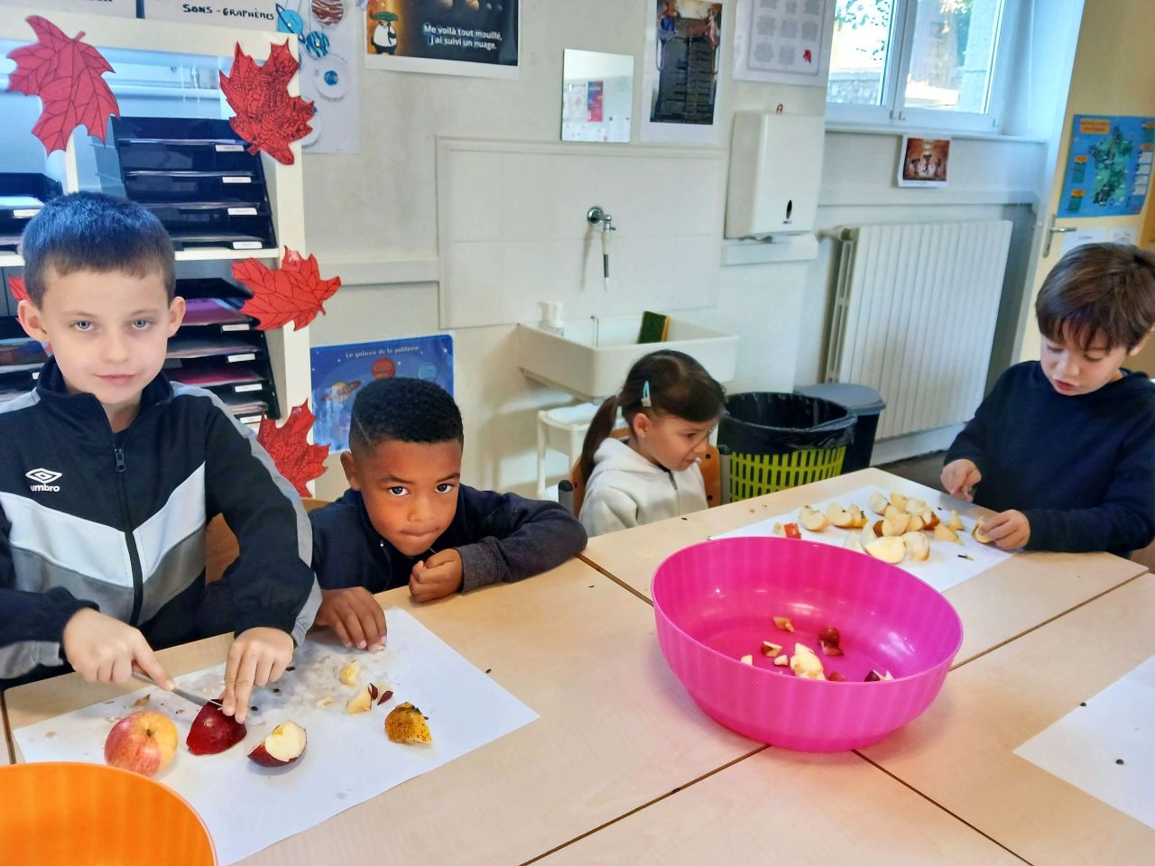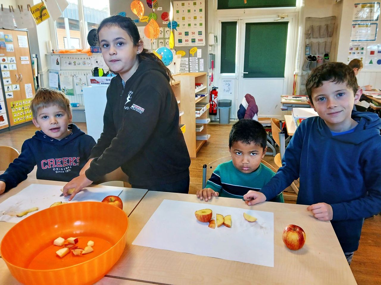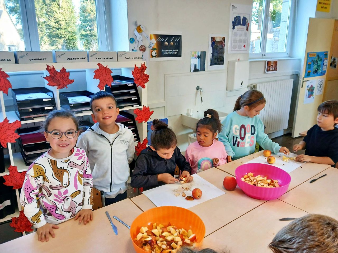 A l'école, la semaine du goût a été rythmée par différents ateliers : lectures, activités artistiques et jeux dans le plan de travail, sciences, apprentissage et récitation de poésies............. et compote !