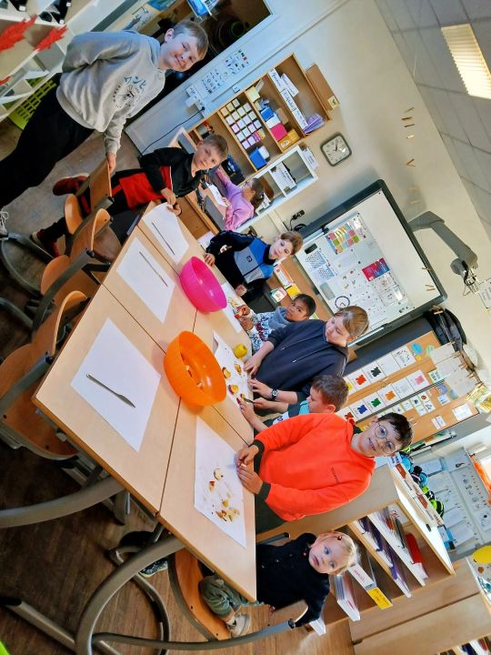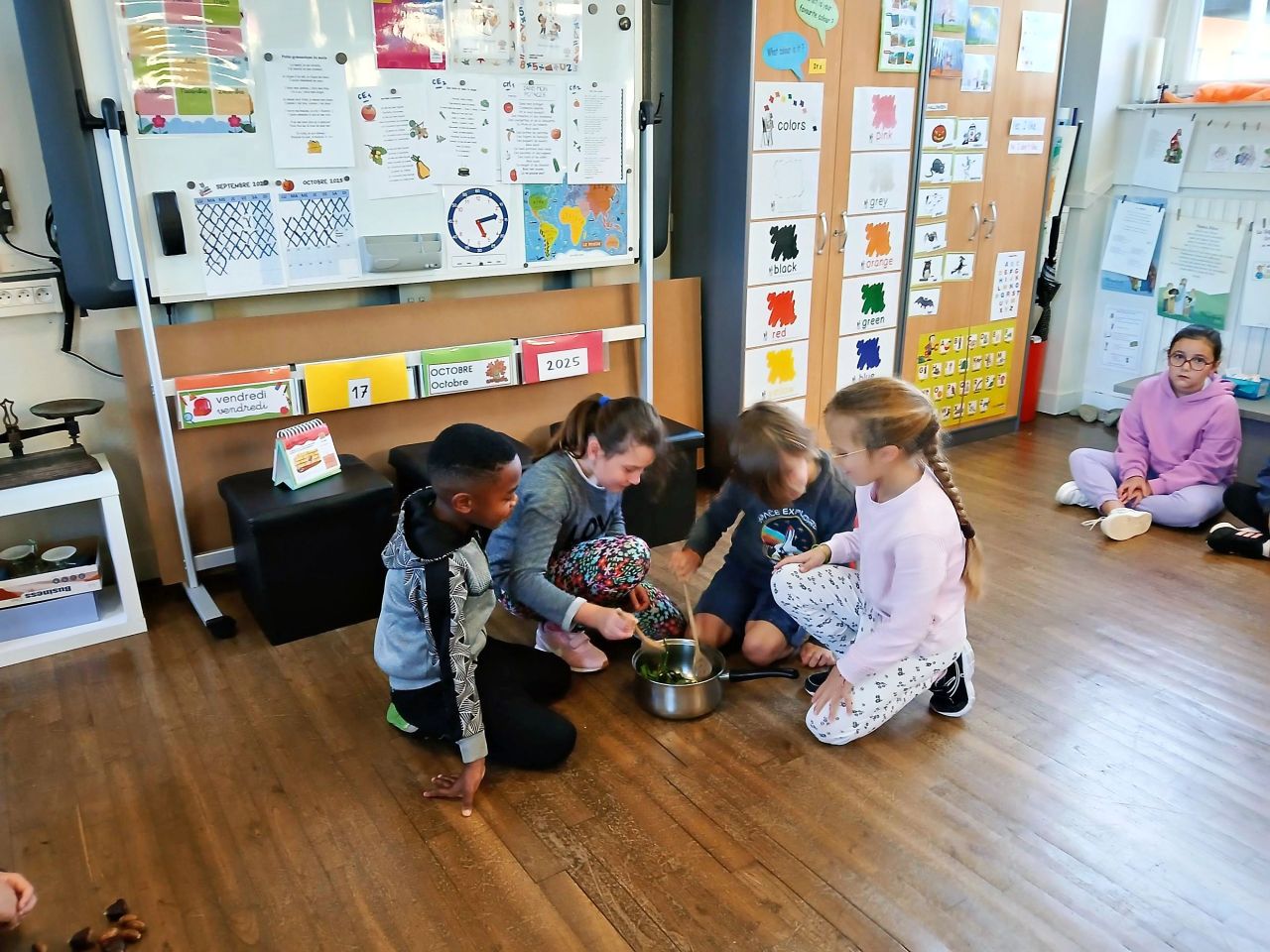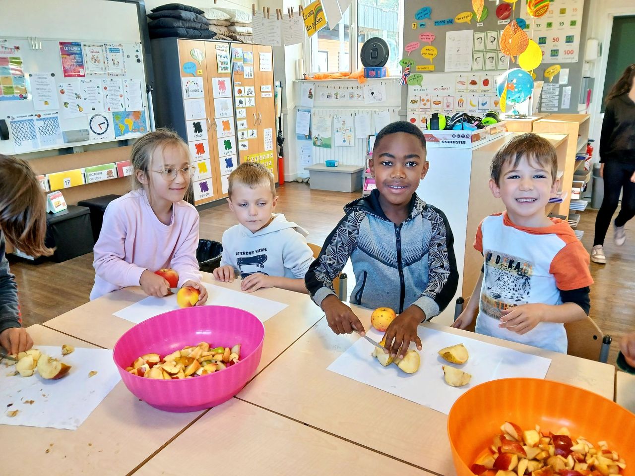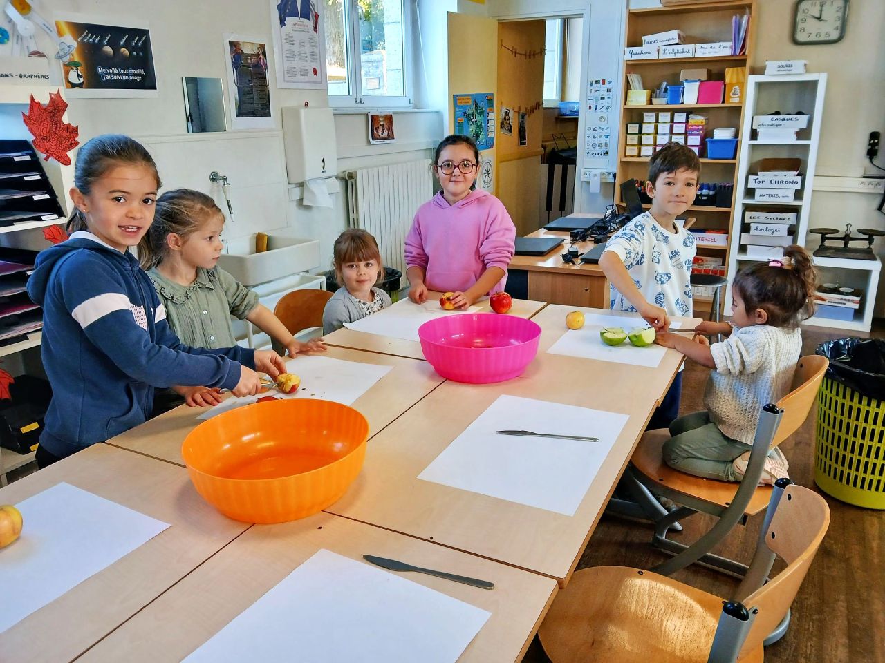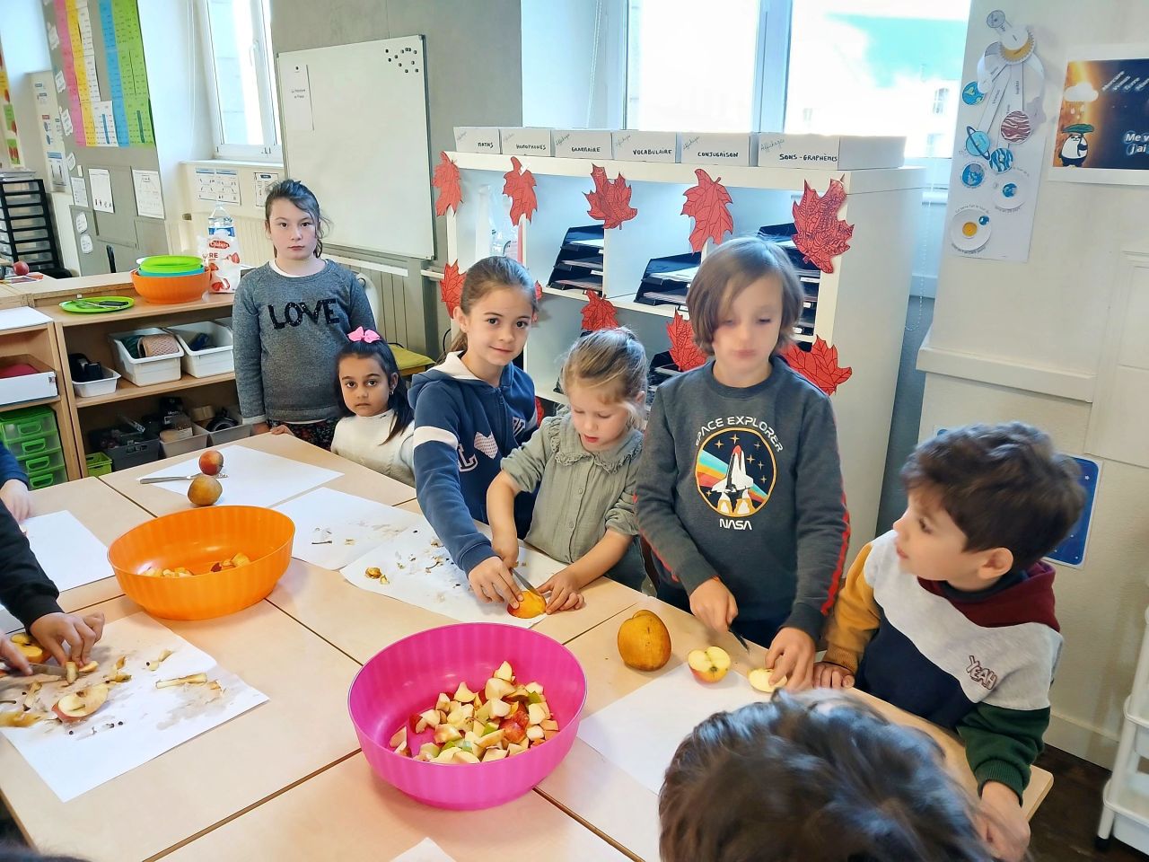 A l'école, la semaine du goût a été rythmée par différents ateliers : lectures, activités artistiques et jeux dans le plan de travail, sciences, apprentissage et récitation de poésies............. et compote !